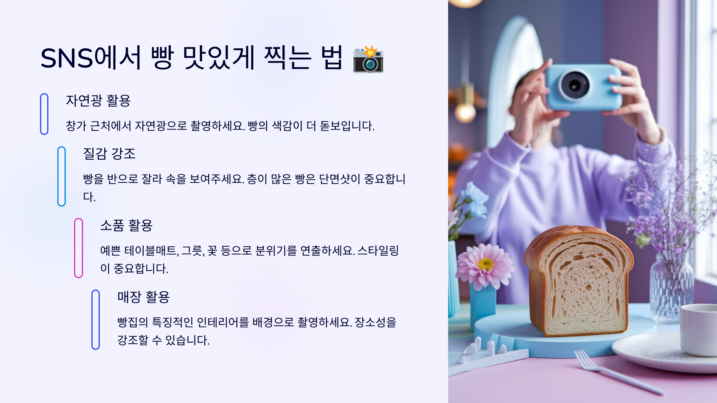 그럼 이제, 빵 덕후들을 위한 SNS 사진 꿀팁을 소개할게요! 📸