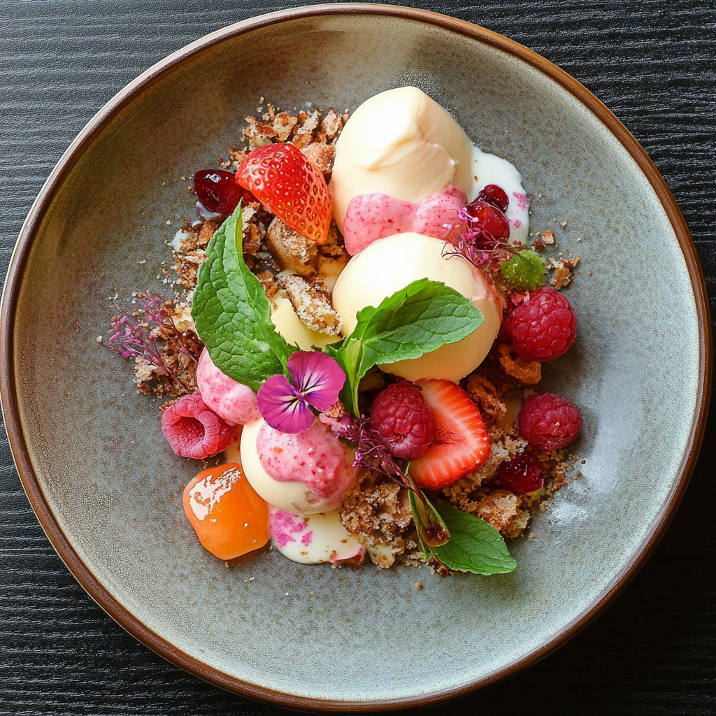 A6. 컬러풀한 과일을 활용하고, 슈가 파우더나 민트 잎을 올리면 훨씬 예쁜 디저트가 완성돼요! 접시 위에 초콜릿 소스를 살짝 뿌려도 카페 스타일로 연출할 수 있답니다. 🍓🍫