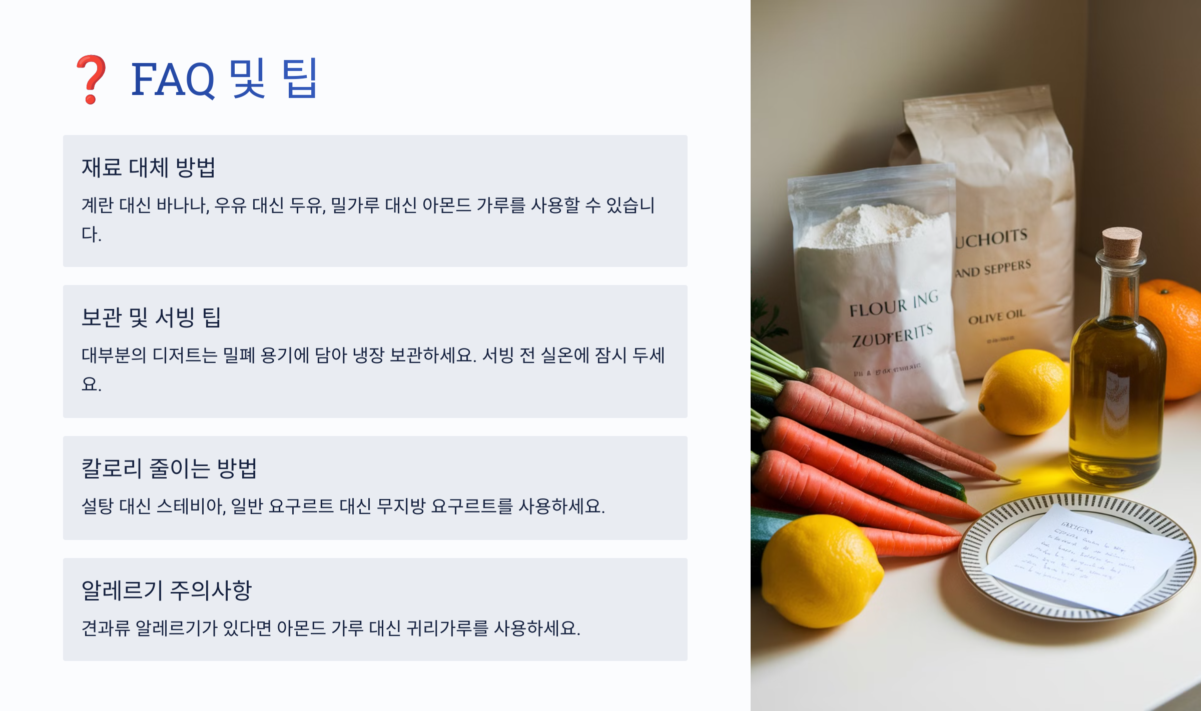 Q8. 건강한 디저트를 만들고 싶다면 어떤 재료를 사용해야 할까요?